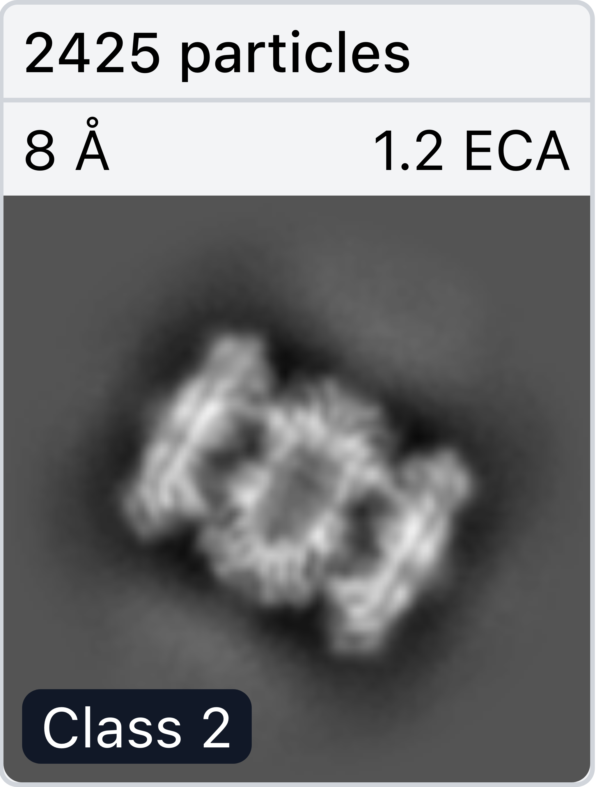 * The Effective Classes Assigned (ECA) for each class. The Effective Classes Assigned for a given 2D Class average is the median Effective Sample Size (ESS) for particles in that class (see [2D Classification](https://guide.cryosparc.com/processing-data/all-job-types-in-cryosparc/job-2d-classification#effective-number-of-assigned-classes) for an explanation of ESS). A higher ECA means that particles assigned to this class have, on average, less certain assignments than for a class with a lower ECA.